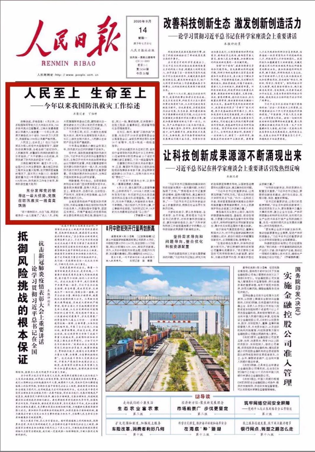 人民至上,生命至上!在以习近平同志为核心的党中央坚强领导下,国家防总统筹协调,各地各部门密切协作,人民解放军、武警部队和消防救援队伍日夜奋战,广大干部群众众志成城,共同筑就了防汛抗洪的坚实“大坝”。