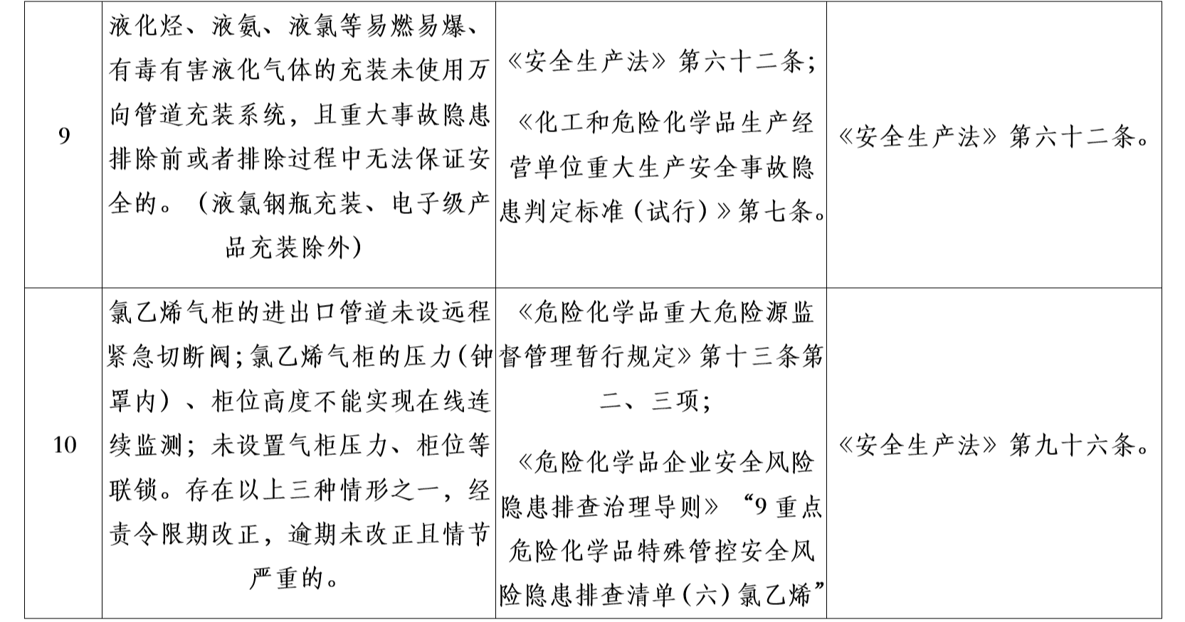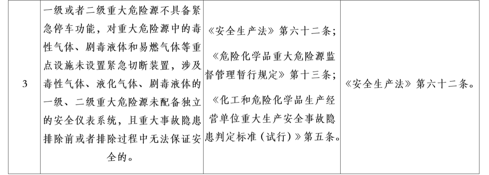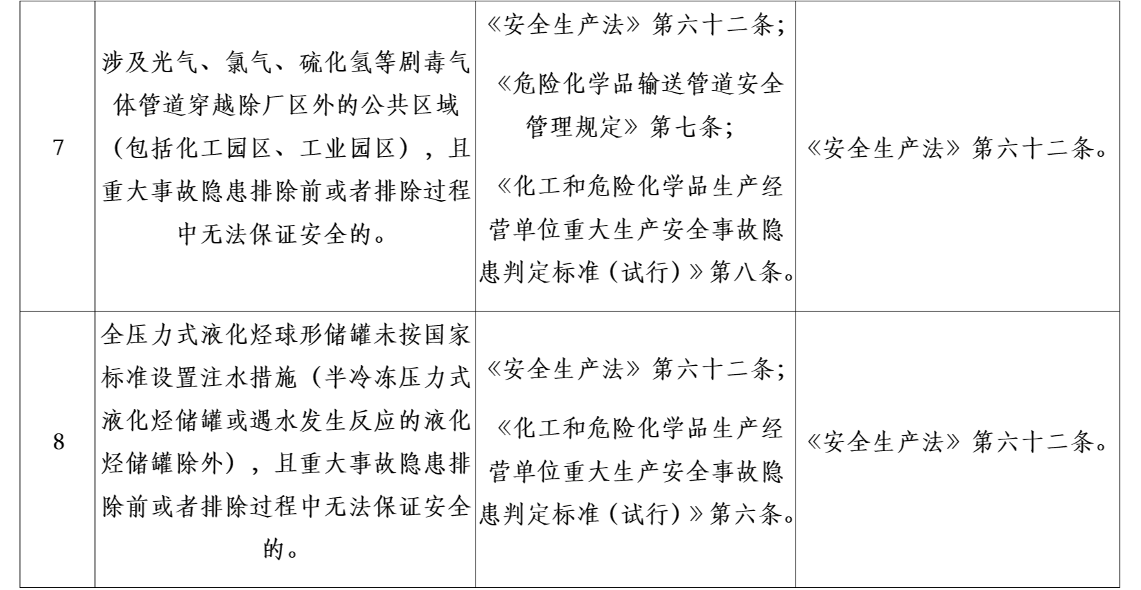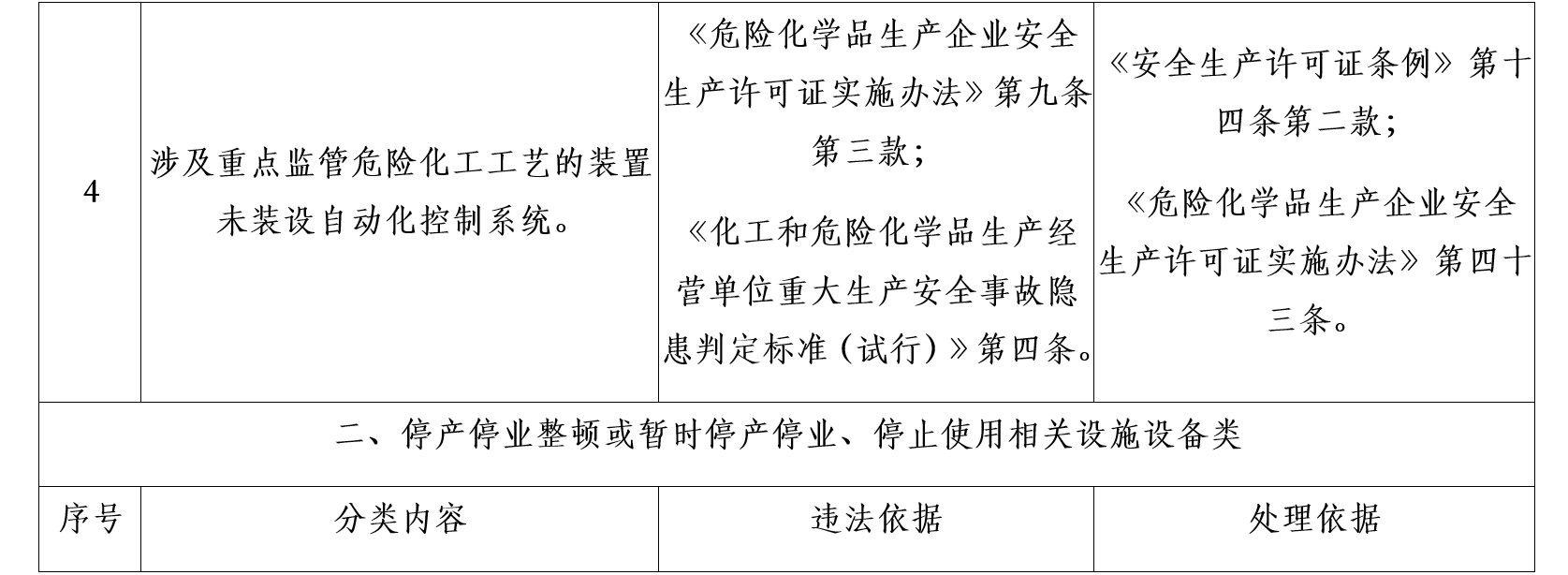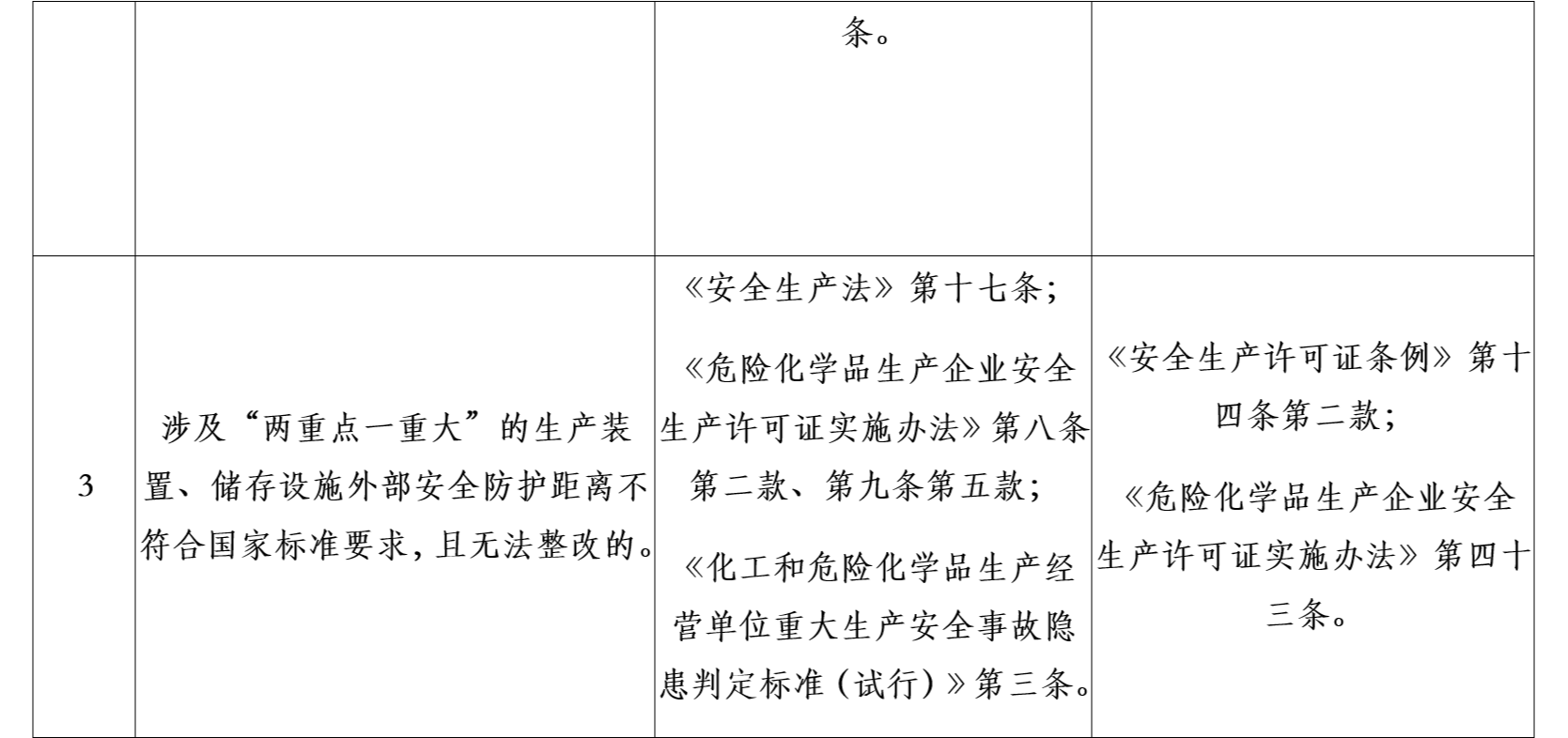 三、《目录》作为对危险化学品企业安全实施分类整治的重要依据,各地区应急管理部门可结合实际研究制定本地区详细目录和实施办法。要严格按照法律、法规、规章、标准的有关具体规定,区分规范达标、改造提升、依法退出三类情况,明确分类内容、违法依据和处理依据。