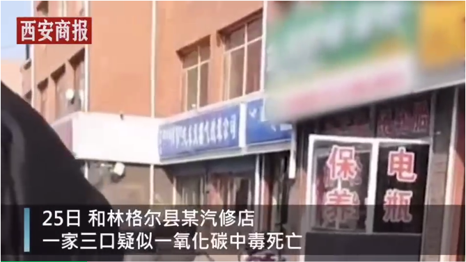 11月26日9时许,呼和浩特市和林格尔县盛乐经济园区四铺村一汽修店内,店主一家三口疑因一氧化碳中毒身亡。