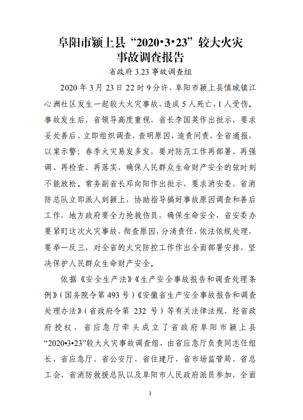 《阜阳市颍上县“2020•3•23”较大火灾事故调查报告》