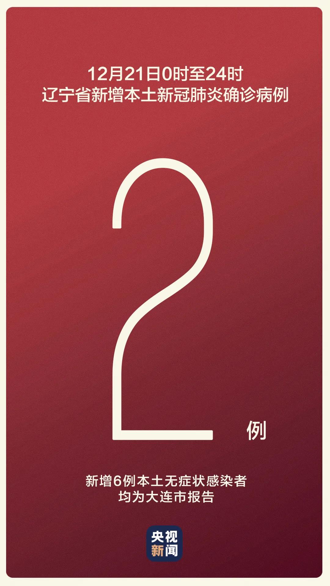 12月22日,辽宁省卫健委通报,21日0时至24时,辽宁省新增2例本土新冠肺炎确诊病例,均属普通型病例;新增6例本土无症状感染者,均为大连市报告。无新增治愈出院病例。