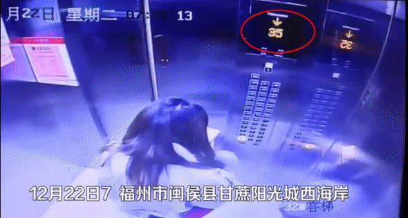 电梯里的女生意识到情况不对后