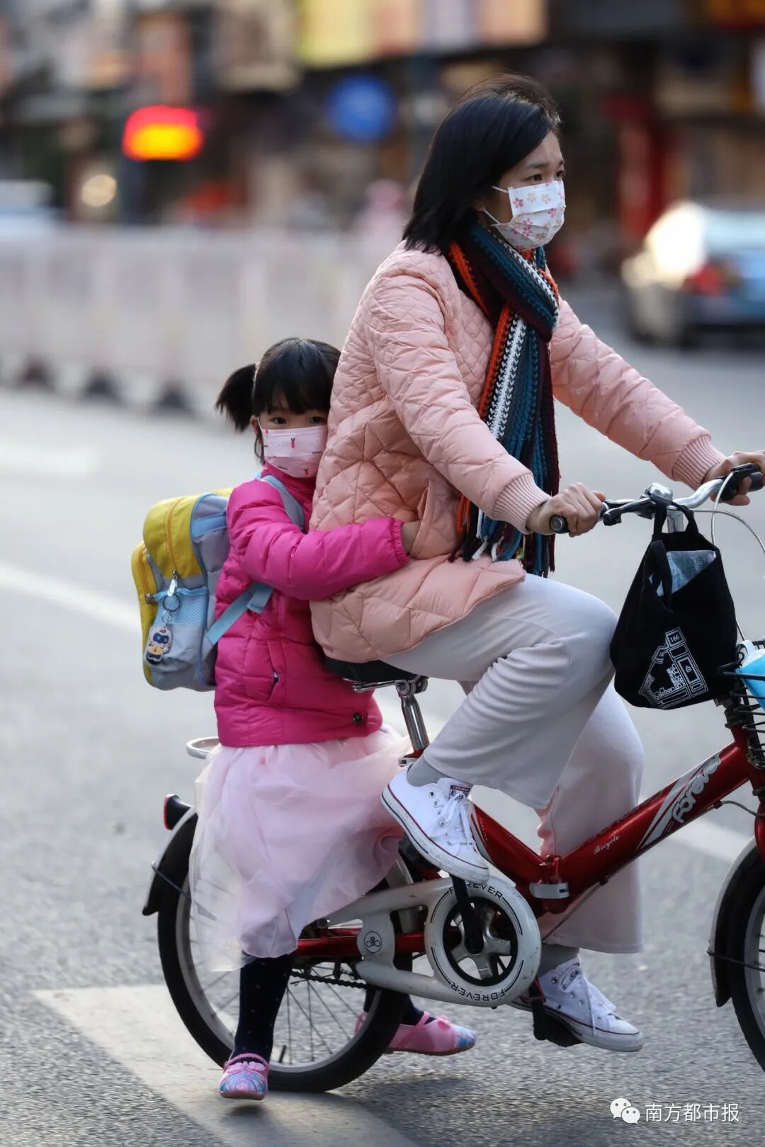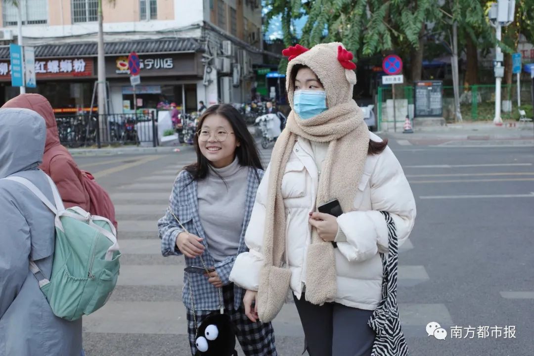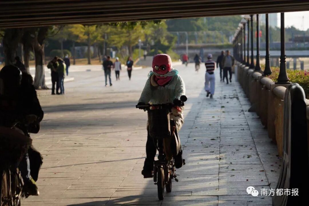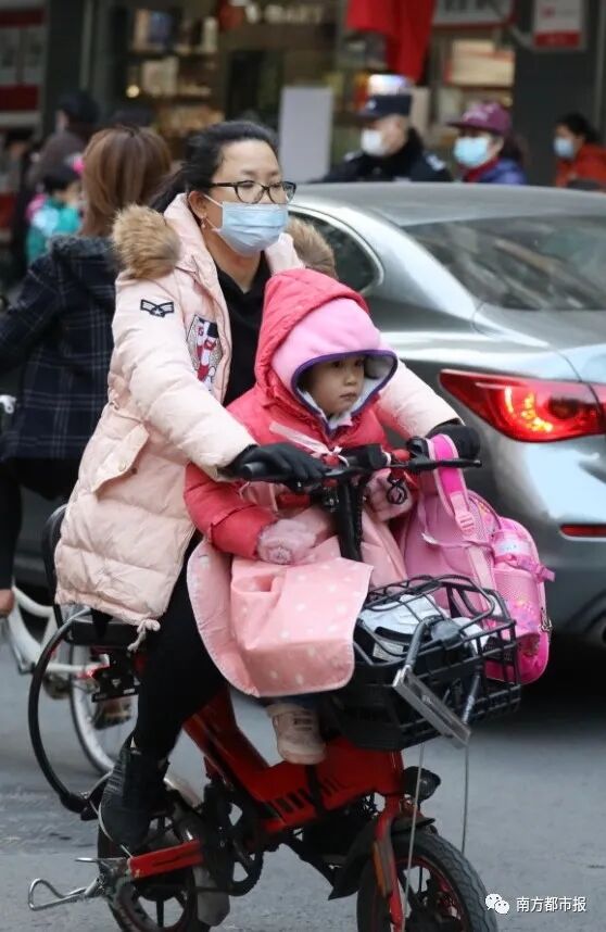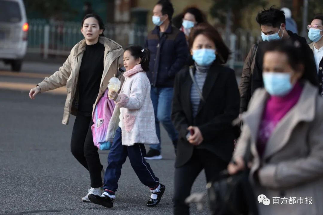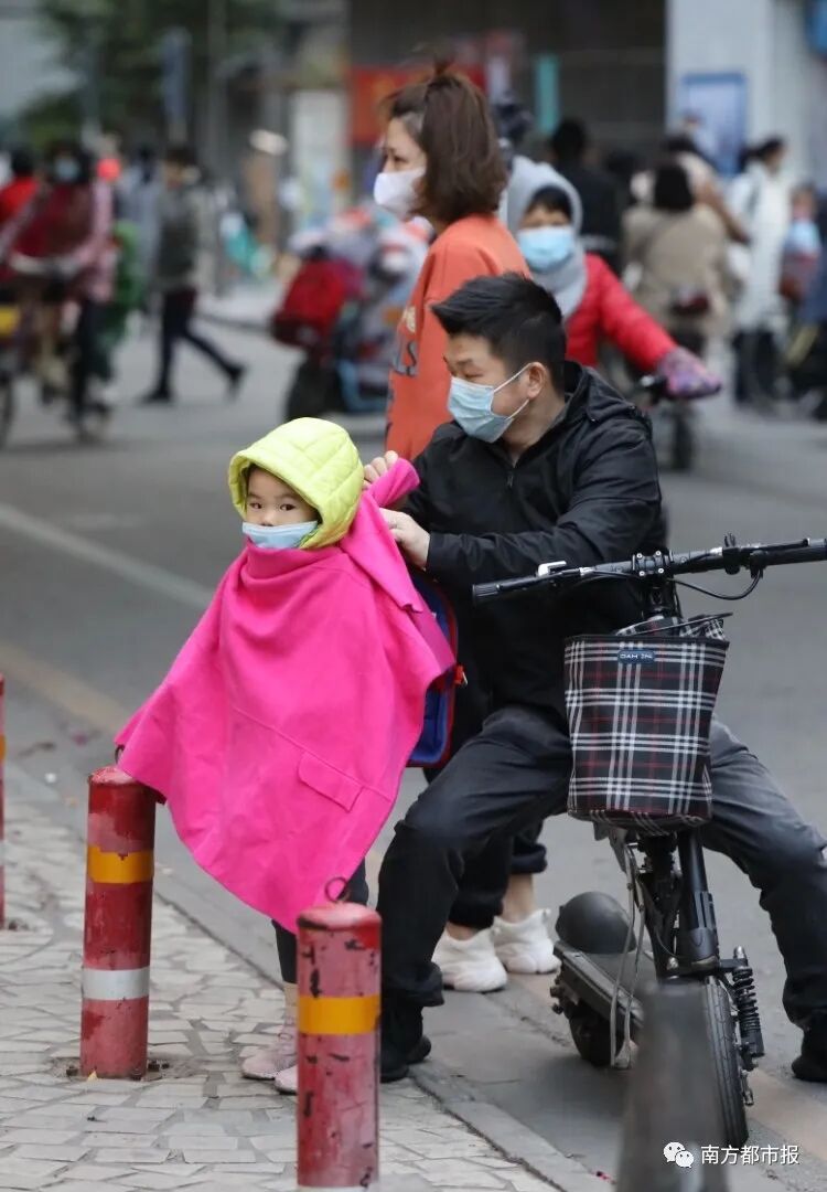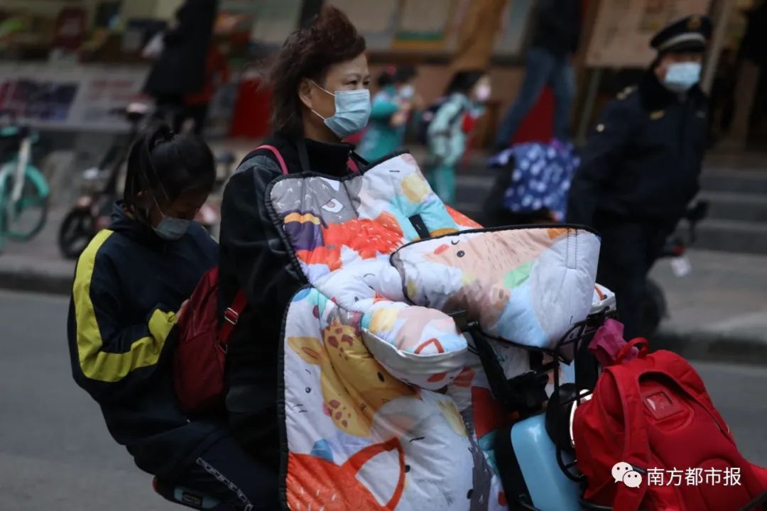12月30日早晨,广州市共和大街,大人小孩身上都增添了许多御寒衣物。南都记者冯宙锋摄