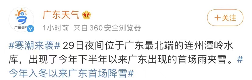 广东出现的首场雨夹雪