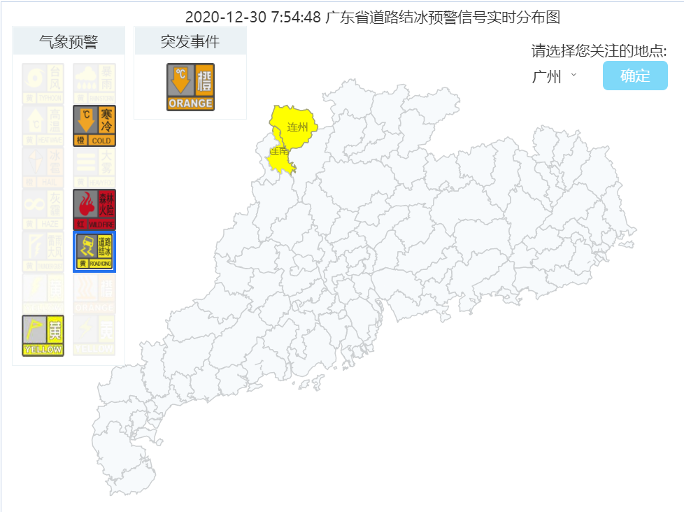 广东多地生成寒冷橙色预警信号