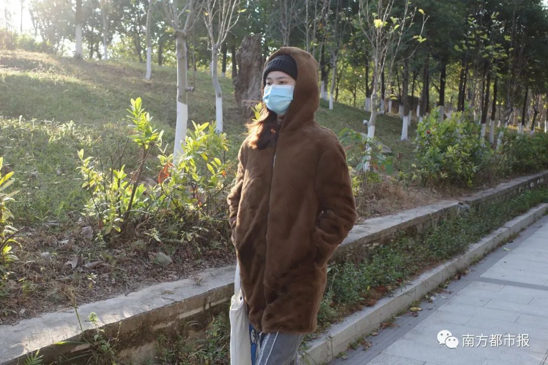 临江公园,外星人装扮御寒。南都记者陈冲摄