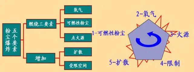 1.适当浓度的可燃性粉尘(一般30-40克每立方米的铝镁粉尘就达到爆炸浓度);