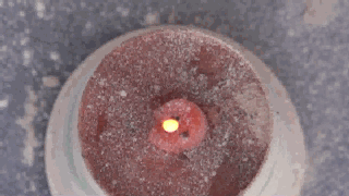 面粉逐渐充斥整个密闭空间,并且,火苗从蜡烛处往外蔓延,形成火团,最终冲出容器,上面的盖子都被顶高将近20公分,火舌不断往外冲出。