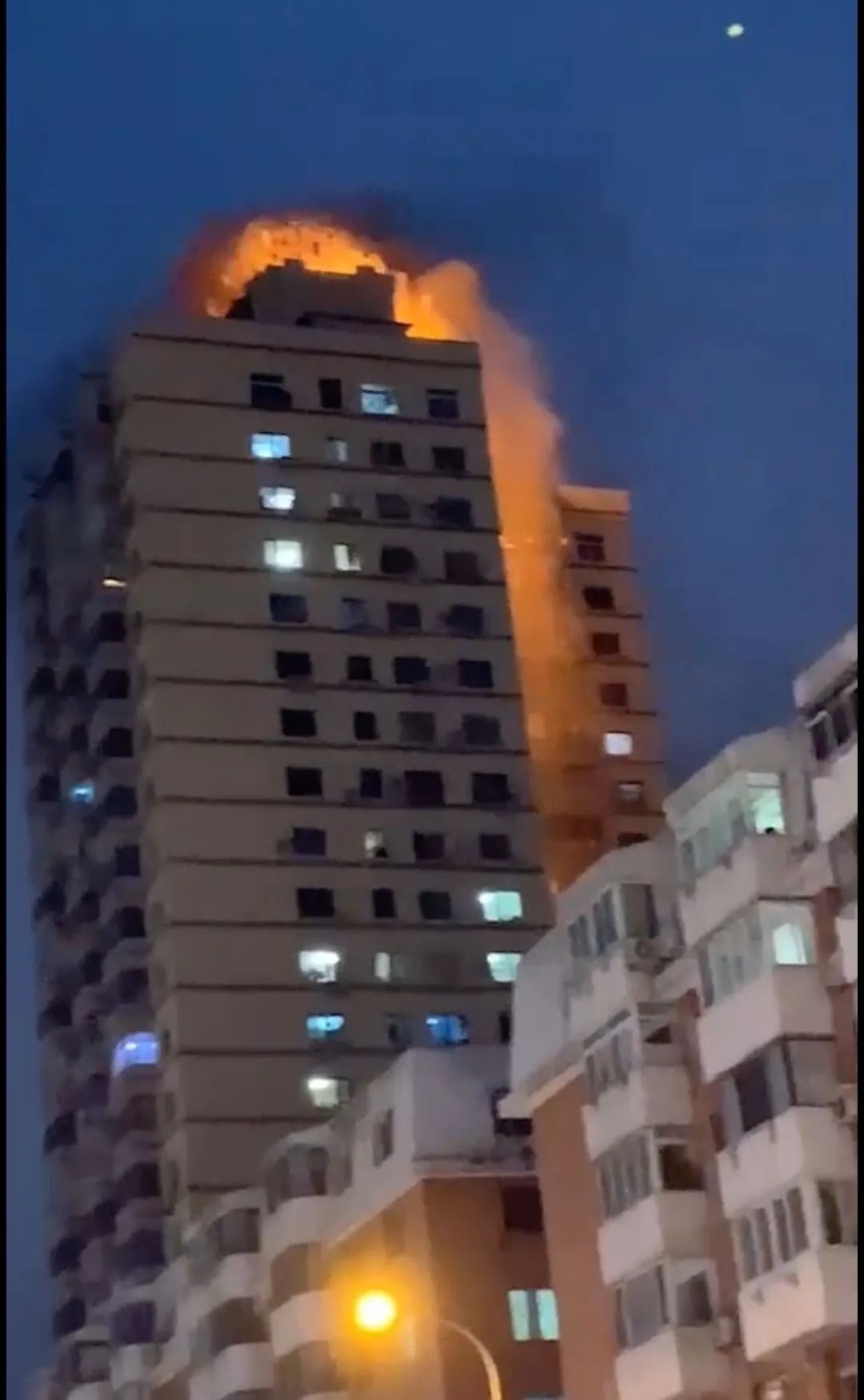 大连一高层建筑突然起火,现场无人员伤亡