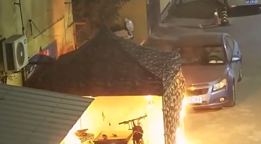 用打火机引燃了遮雨棚