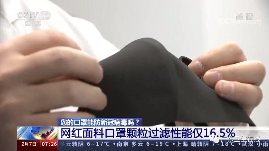 国家纺织制品质量监督检验中心项目负责人黄聪指出,检测结果显示该网红口罩的过滤效率比较差,仅为16.5%,也就是说,83.5%的气溶胶颗粒都能通过这个面料的口罩。“它只能防一些日常的花粉、尘粒和一些大的颗粒。”