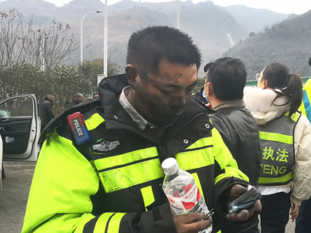△靳双溢的脸部、口罩和双手都变得黢黑