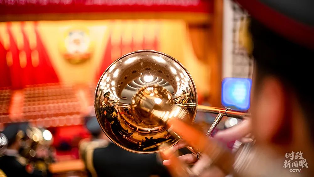 △开幕会上,军乐团演奏国歌。