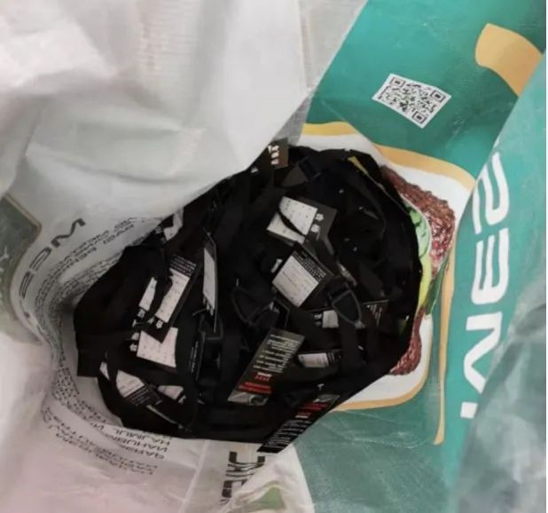 记者发现,这款头盔仅仅使用塑料袋包装起来,产品上没有厂家名称、地址、电话、生产日期等信息。在作坊的一角,记者发现了一个装满了产品合格证的袋子。老板直言,他卖的是“三无”产品,贴上合格证也不代表着产品就合格了。
