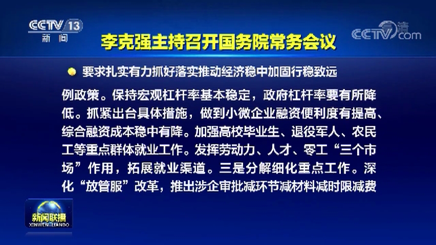 李克强主持召开国务院常务会,确定《政府工作报告》重点任务分工