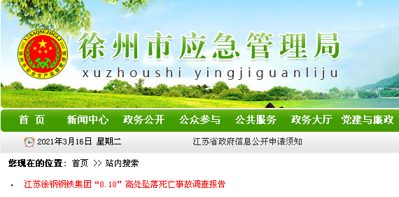 近日,徐州市应急管理局发布《江苏徐钢钢铁集团“8·18”高处坠落死亡事故调查报告》。