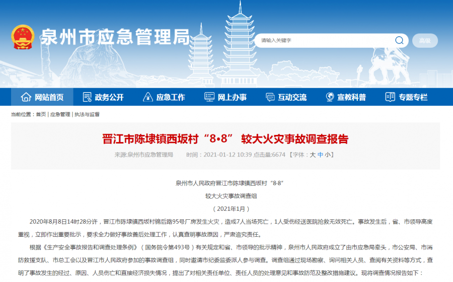 7.晋江市消防救援大队督促陈埭镇落实消防安全责任不到位,对列为区域性火灾隐患的陈埭镇西坂村督促整治不力。