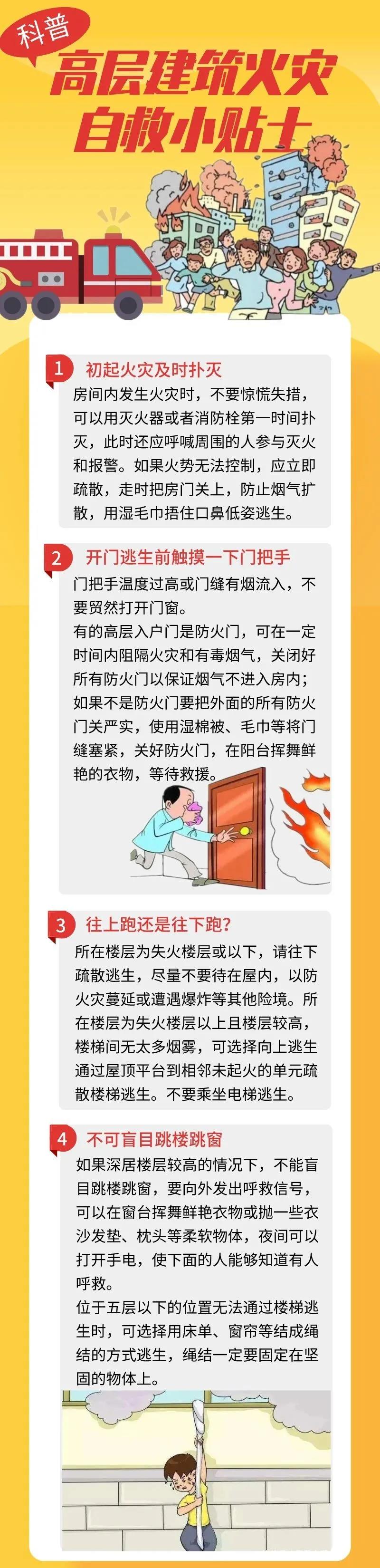 虽然避免了一次悲剧的发生,但火灾隐患确不得不防,消防部门提醒:遇到高层住宅火灾,要根据火势情况,采取科学的防护和逃生措施,不要贪恋财物,并第一时间拨打119报警电话。