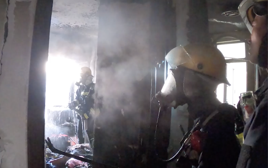 从救援现场视频中可以看到,屋内浓烟密布,可以说是伸手不见五指,这也给救援带来一定的难度。消防员做好防护措施之后,进入屋内一边排除危险,一边靠近被困人员。即使房间不大,但浓烟加上高温,让救援人员移动的每一步都很艰难。经过探步前进,消防员终于找到被困人员,并在第一时间用水枪掩护被困者进行转移。7时38分,被困人员被成功营救。此时,离7时30分抵达现场仅过去8分钟,却是生死营救的8分钟。