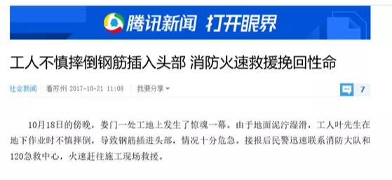 而这样被钢筋插中的事故