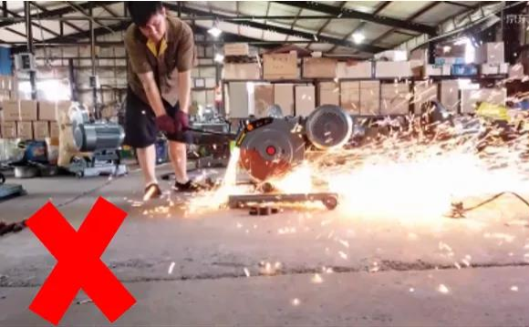 ▲未佩戴防护用品使用钢筋切割机