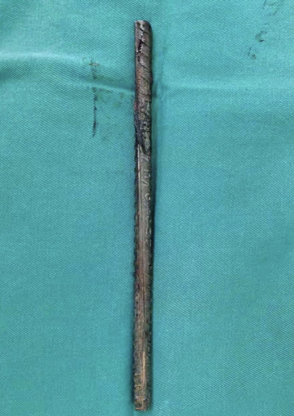 ▲被取出的插入工人头部的钢筋