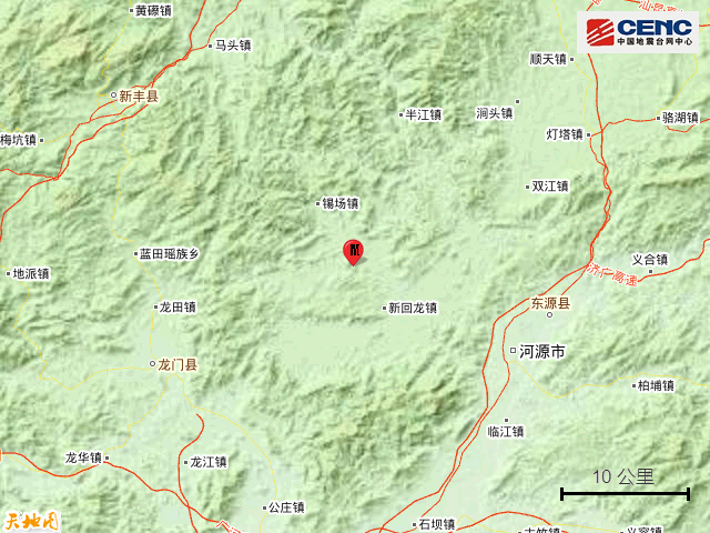 据了解,本次地震周边5公里内的村庄有鱼坑、八洞、割毛王、十洞村、洞源村、七洞、五洞、六洞、二洞、四洞,20公里内的乡镇有锡场镇、新回龙镇、新港镇、源南镇、枫木镇。