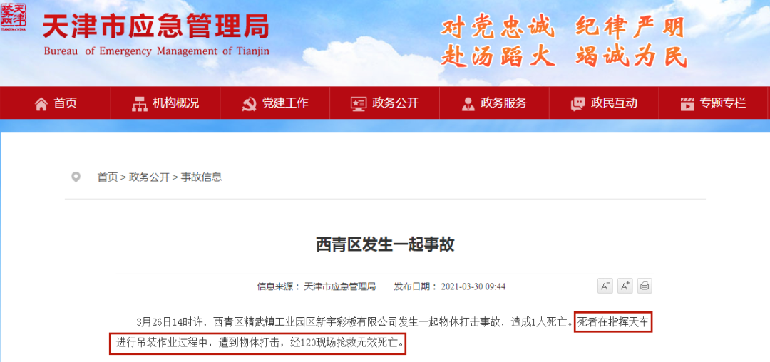 3月26日14时许,天津某公司一员工在指挥天车进行吊装作业过程中,遭到物体打击,经120现场抢救无效死亡。疑似为司索工违规站在吊物坠落半径范围内导致的意外事故。
