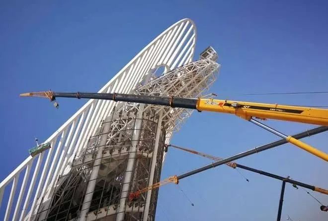 2.当起吊体积大的物品时,要注意物品与起重臂相碰撞,要留一定的余量。同时,要防止物品摆动与起重臂相碰。