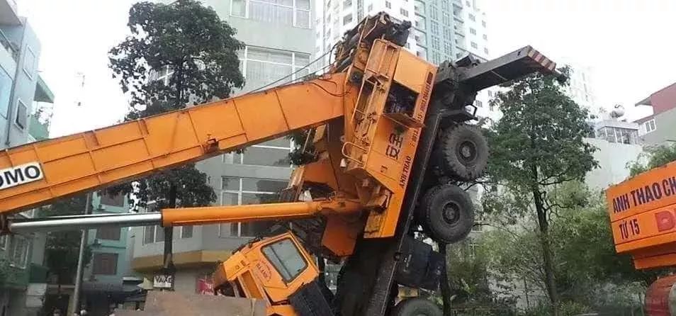 在起吊过程中,如果操作伸臂或趴臂,就会容易发生翻车。因为趴臂和伸臂,都是在给吊车增加负重,是在作“加法”,如果在此之前吊车已经满负荷,继续作“加法”则可能瞬间超载翻车。