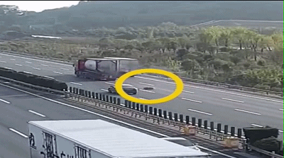 行车时,前车突然掉落轮胎或货物