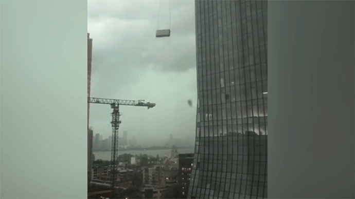 吊篮在离地十余米的空中旋转