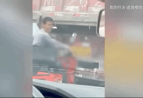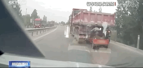 在追了大约两公里后,司机找到时机,加速冲到货车驾驶室左侧,冲着货车司机大声喊道:“快停下,你车后面挂了两个人!”