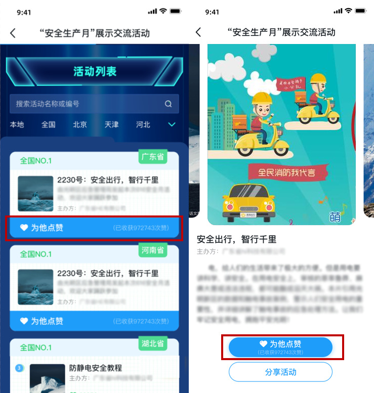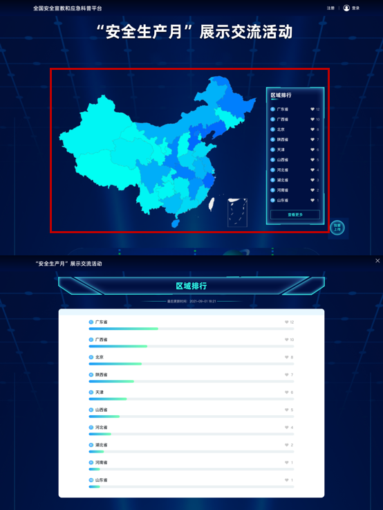1.本次活动结束后,全国组委会将根据活动点赞情况和各地区活动开展情况,选出“十大热门活动”和“十大安全月活力地区”,在全国安全宣教和应急科普平台进行展播交流。