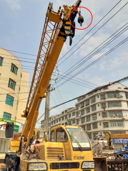 4.施工单位未给吊装作业安排指挥人员,起重机司机操纵安全保护装置失效的起重机进行作业。由于起重机司机很难观察到顶部吊钩的状况,一旦操作不当,易造成吊钩过卷冲顶后脱落。