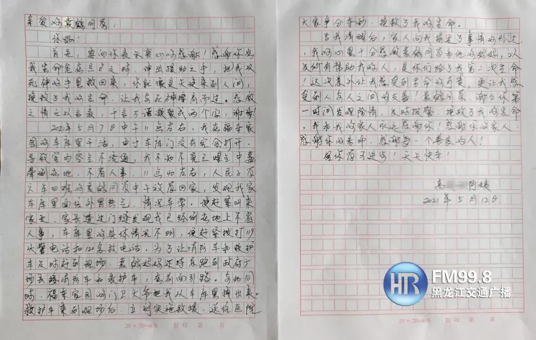 将一面锦旗和一封感谢信
