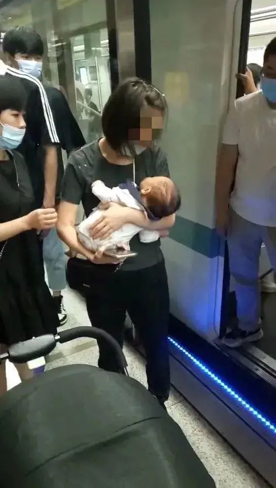 婴儿妈妈边挡车门边求救