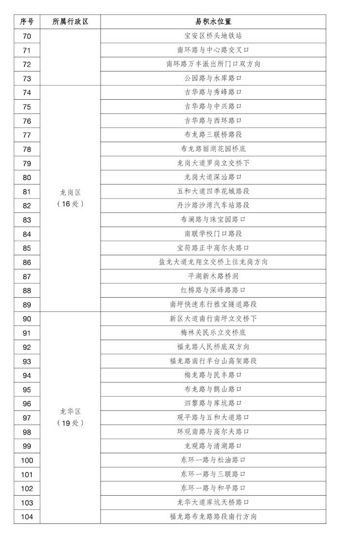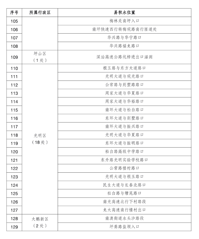 深圳哪些路段易积水点、易拥堵?