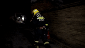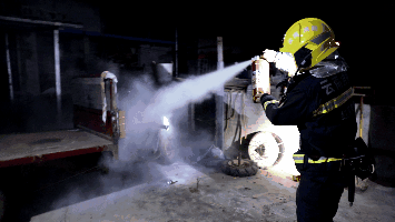 一名消防员立即使用干粉灭火器