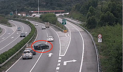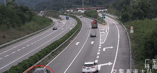眼看就要撞上去了,何先生急忙闪了几下大灯提醒,随后黑色小车刹车灯灭了。然而转眼间黑色小车刹车灯又亮起,还直接停在快车道上。紧急关头,何先生发现右后方刚好没车,急忙往右一拐绕开黑色小车,十分惊险。回到家后,何先生将车内的行车记录仪导出,向珠海交警进行举报。珠海交警接到举报后,立即展开调查,监控刚好拍下这惊险瞬间。当天下午,这辆黑色小车在左侧快车道急剧减速,后方小车也随之刹车。眼看2车相距越来越近,还好后车向右变道,成功绕过急停小车。这时,急停的黑色小车右转向灯亮起,向右微微转向又停了下来,在快车道足足停了50秒。在这50秒内,受到黑色小车停车影响,原本高速行驶的车辆不得不急刹变道,绕开这辆“危险”的黑色小车,差点酿成多车追尾事故。过了一会儿,黑色小车向右“探出”半个车身,越过导流线驶入大托山服务区。几分钟后,黑色小车离开了服务区。