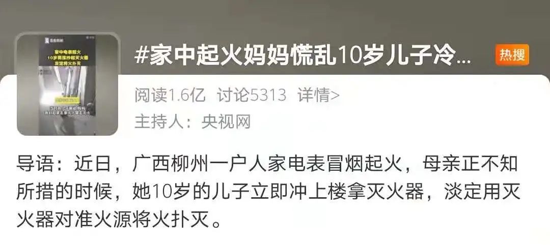 #家中起火妈妈慌乱10岁儿子冷静救火#