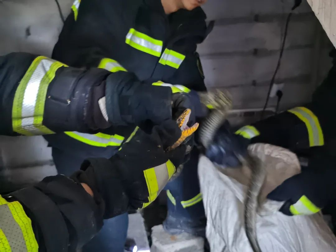 在最里层的空心砖内成功将蛇抓获。