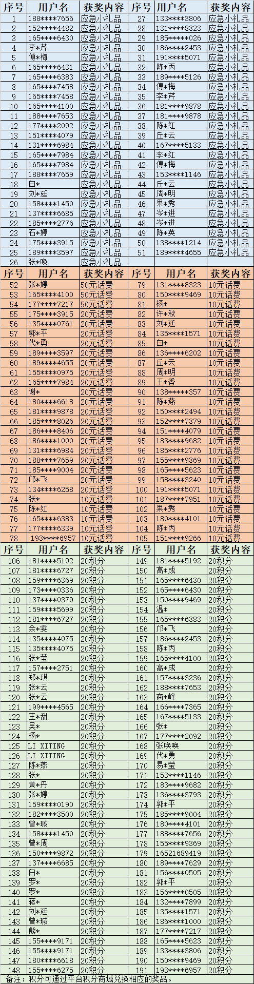 中奖名单公示