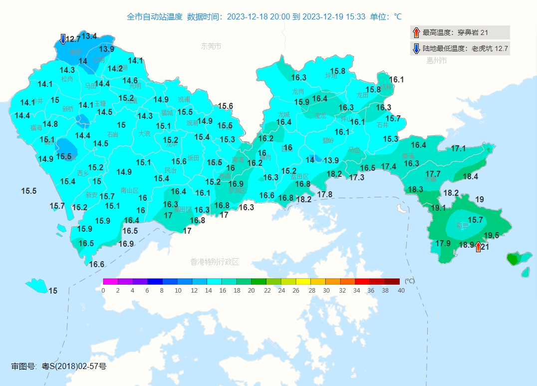 12月18日起,强冷空气对深圳的影响已经结束,我市气温也出现短暂回升。12月19日全市最高气温普遍达到15-16℃。