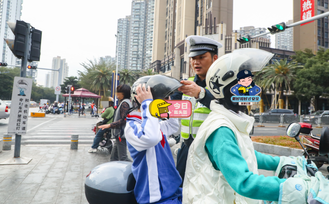 骑电动自行车接送孩子时,家长及孩子都应正确佩戴安全头盔,骑行时务必做到不闯灯、不逆行。