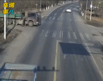大货车右转弯的一瞬间