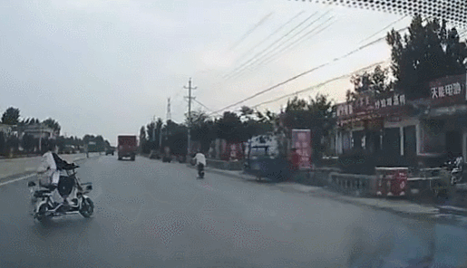 ▲学生骑电动车不戴安全头盔,幸好书包抵消了部分撞击。