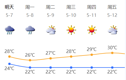 ☑ 8日阵雨转阴天,气温略降;9-12日多云到晴天,早晚清凉。