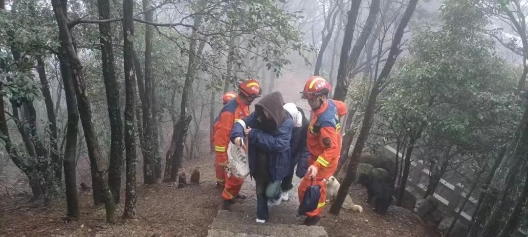 2024年4月3日,安徽池州九华山风景区内,有3名游客登山迷路被困。据了解,被困游客3人相约从凤凰松景区前往天台景区,途中遭遇降雨天气,加之夜晚大雾笼罩不慎迷路,遂报警求助,经4小时救援寻找,被困游客被安全转移下山。