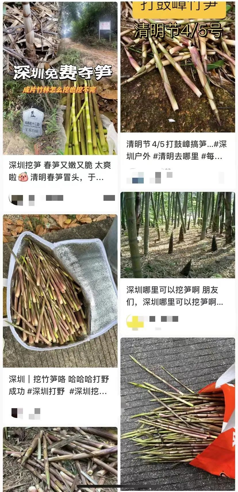 深圳市林长办相关负责人说,《广东省森林公园管理条例》规定,进入森林公园的游客不得有采挖花草、树根行为。否则由森林公园管理机构责令停止违法行为、限期恢复原状或者采取其他补救措施,并由林业执法部门处五十元以上五百元以下的罚款。盗采竹笋数量较多的,可能涉及违反《中华人民共和国治安管理处罚法》,将被处行政拘留等处罚。而《最高人民法院关于审理破坏森林资源刑事案件具体应用法律若干问题的解释》明确,非法实施采种、采脂、挖笋、掘根、剥树皮等行为,牟取经济利益数额较大的,依照《刑法》第264条的规定,以盗窃罪定罪处罚。同时构成其他犯罪的,依照处罚较重的规定定罪处罚。